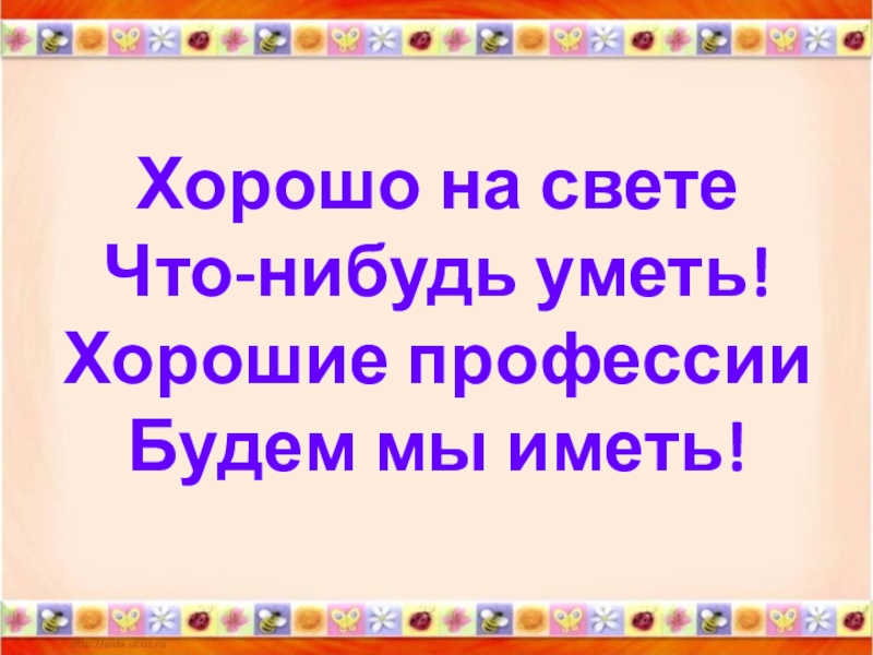 Слайд 2Хорошо на свете Что-нибудь уметь! Хорошие профессии Будем мы иметь!