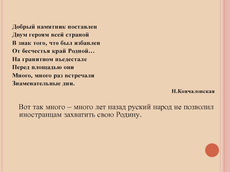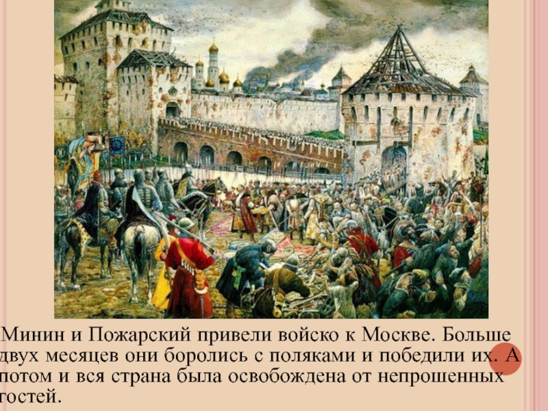 Воспользовавшись внутренними смутами, в Россию вторглись иностранцы – шведы и поляки. Разбойничьи шайки грабили и губили народ. Казалось, помощи было ждать неоткуда. Трудно было жителям Москвы, захватчики разрушили их дома, осквернили храмы.