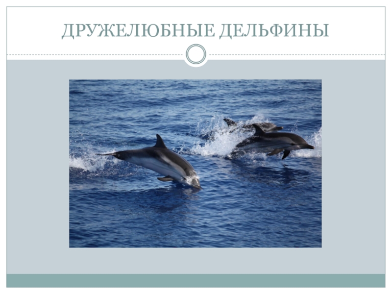 Слайд 11ДРУЖЕЛЮБНЫЕ ДЕЛЬФИНЫ