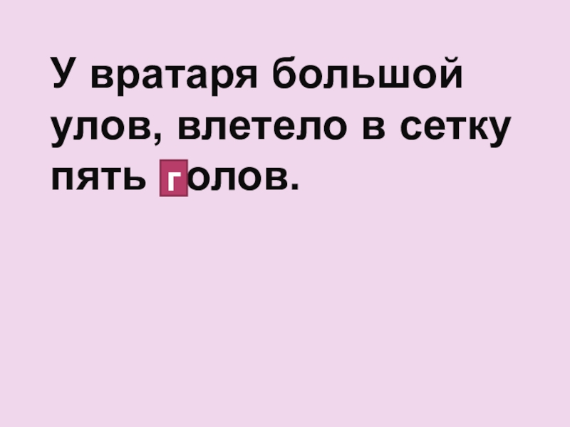 Слайд 23У вратаря большой улов, влетело в сетку пять волов.