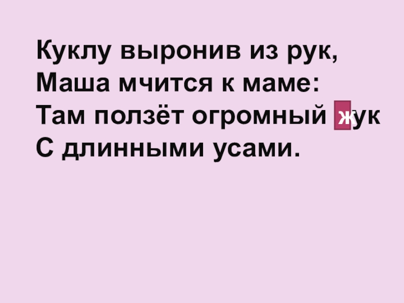 Куклу выронив из рук, Маша мчится к маме: Там ползёт огромный лукС длинными усами.ж