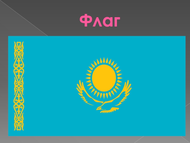 Слайд 6Голубой флаг с золотистым солнцем и парящим силуэтом орла и герб,