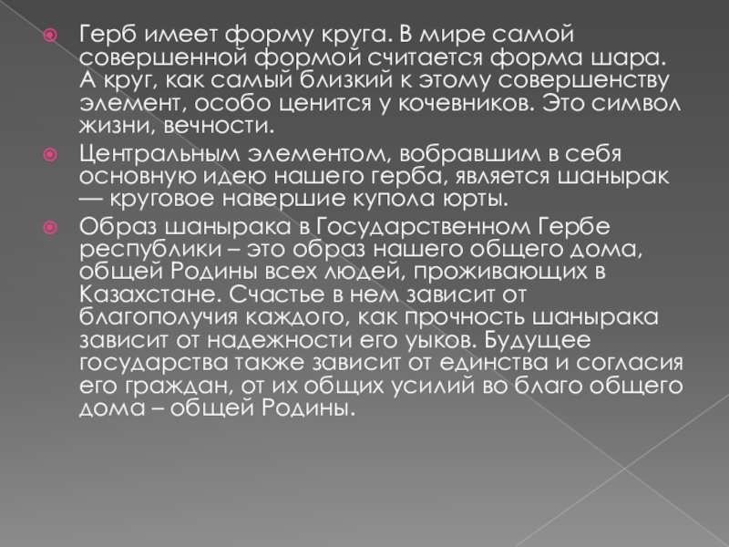 Слайд 8Герб имеет форму круга. В мире самой совершенной формой считается форма
