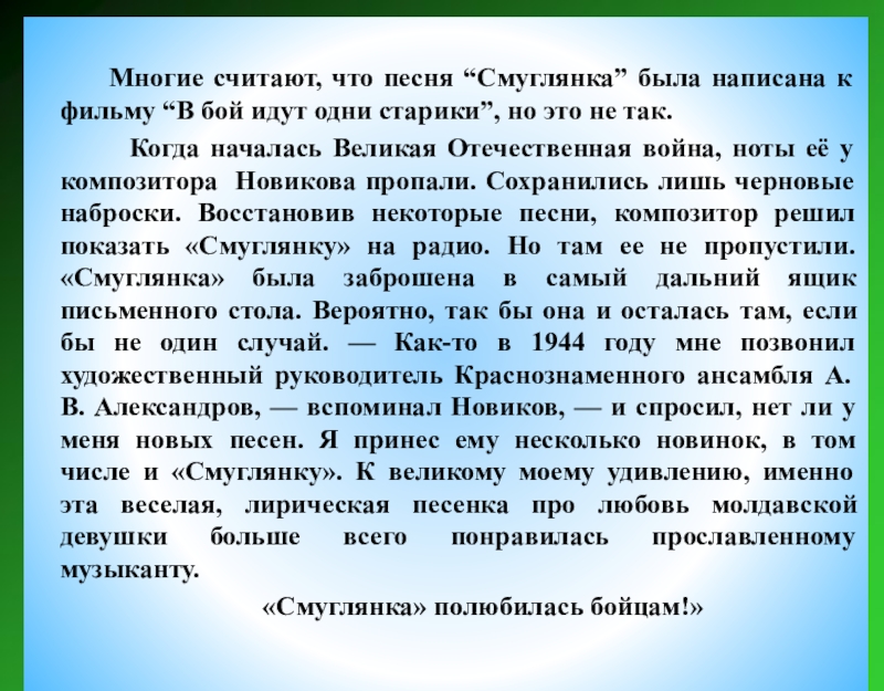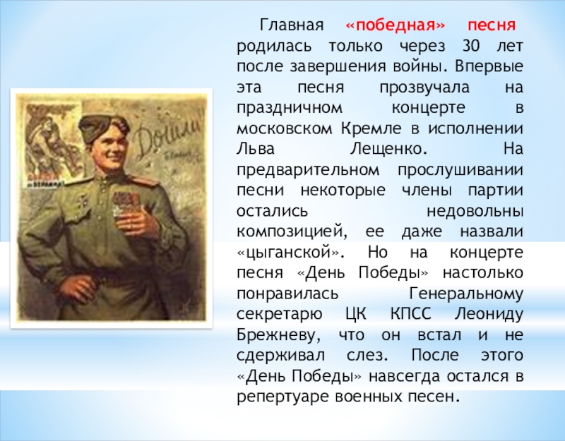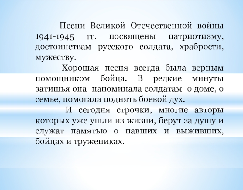 История песен военных лет.