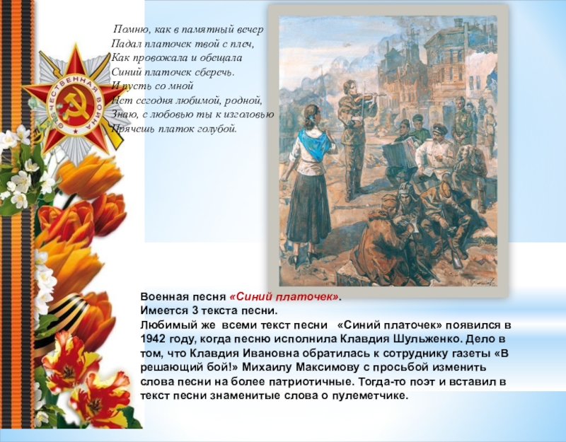 Военная песня «Синий платочек».