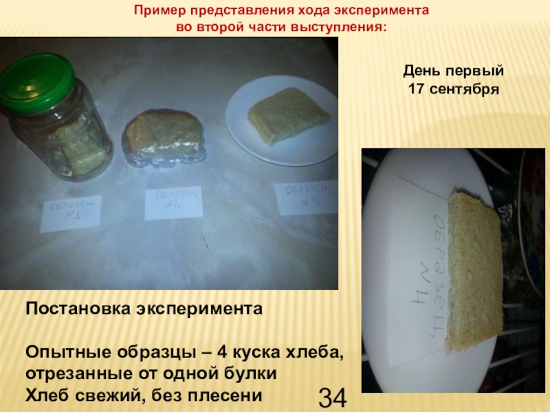 Пример представления хода эксперимента