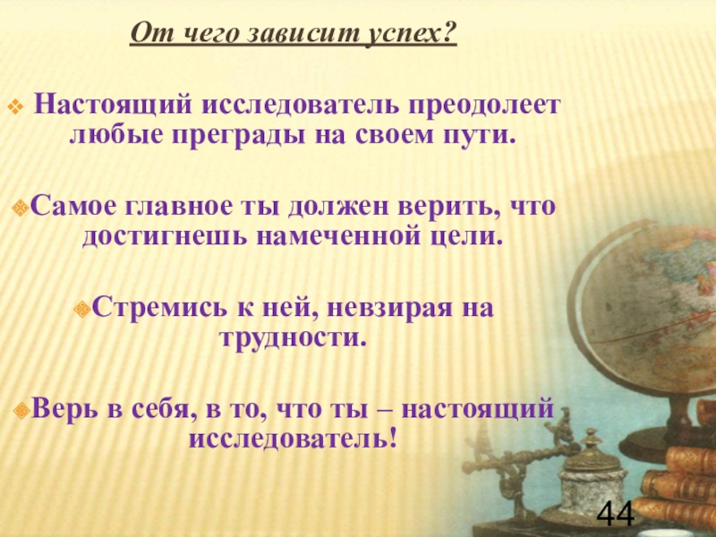 Это сайт презентаций, где можно хранить и обмениваться своими презентациями, докладами, проектами, шаблонами в формате PowerPoint с другими пользователями. Мы помогаем школьникам, студентам, учителям, преподавателям хранить и обмениваться учебными материалами.