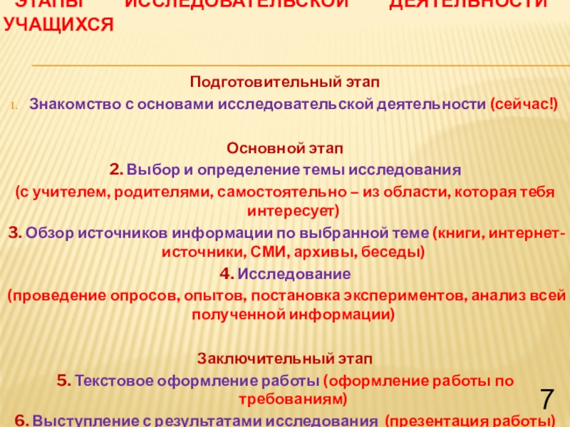 ЭТАПЫ ИССЛЕДОВАТЕЛЬСКОЙ ДЕЯТЕЛЬНОСТИ УЧАЩИХСЯ