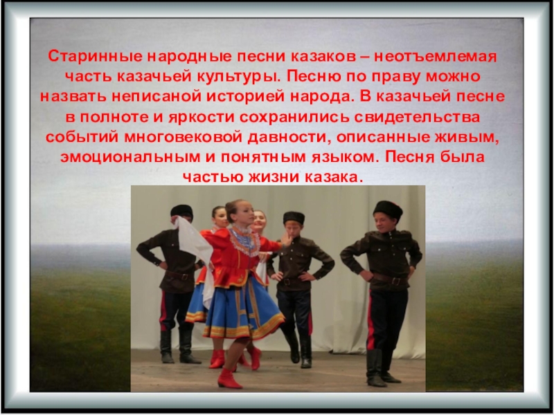 Старинные народные песни казаков – неотъемлемая часть казачьей культуры. Песню по