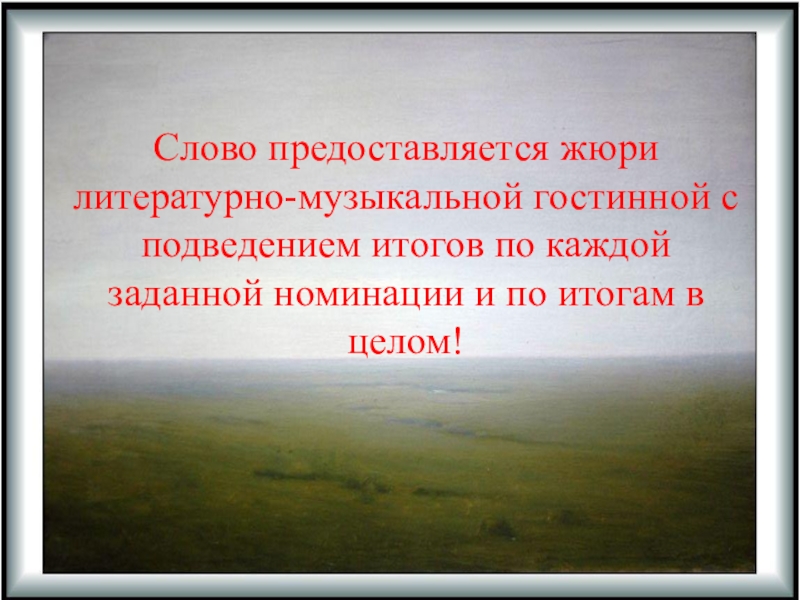Слайд 17Слово предоставляется жюри литературно-музыкальной гостинной с подведением итогов по каждой заданной