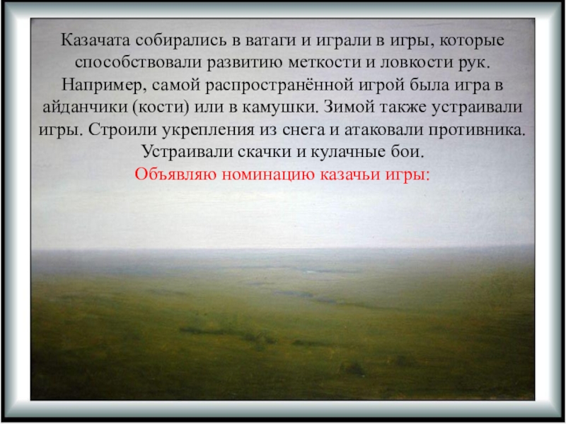 Казачата собирались в ватаги и играли в игры, которые способствовали развитию