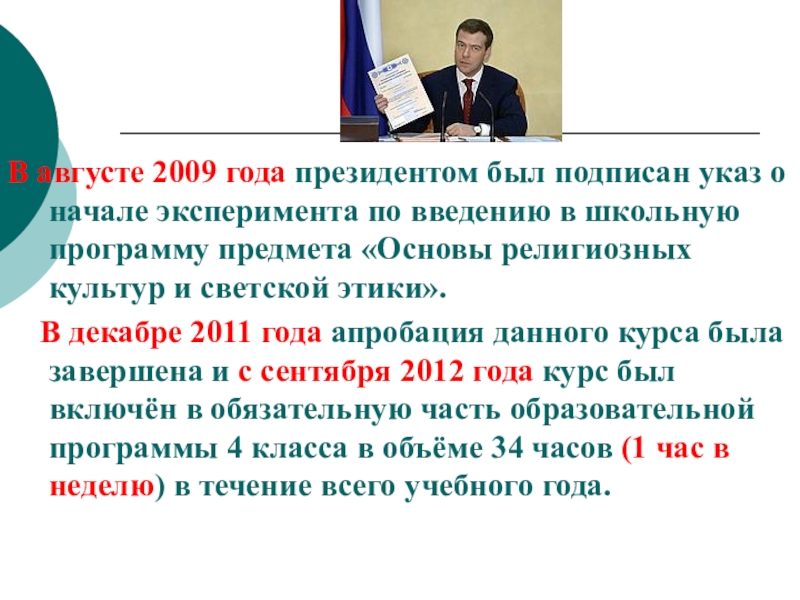по введению в школьную программу предмета «Основы религиозных культур и светской этики».
