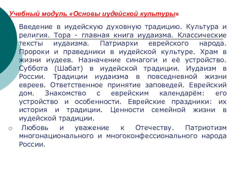 Слайд 6Учебный модуль «Основы иудейской культуры»
