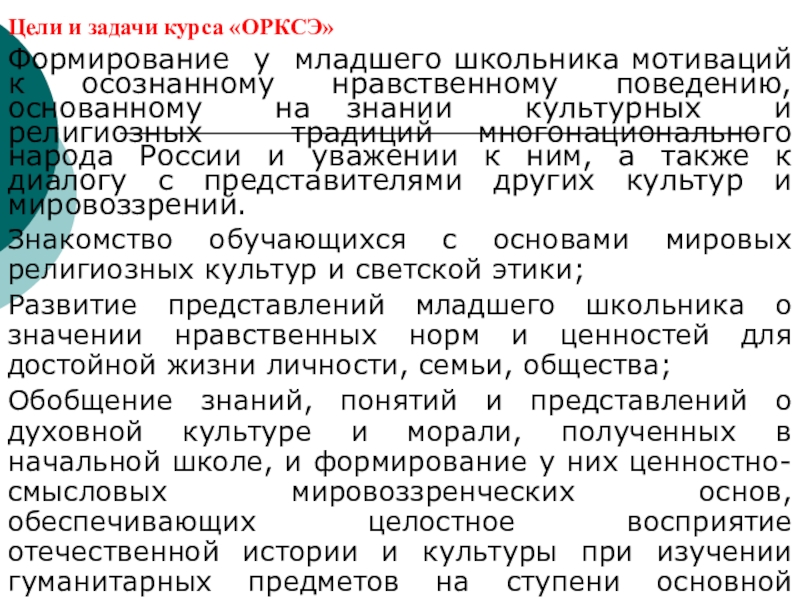 Слайд 4Цели и задачи курса «ОРКСЭ»