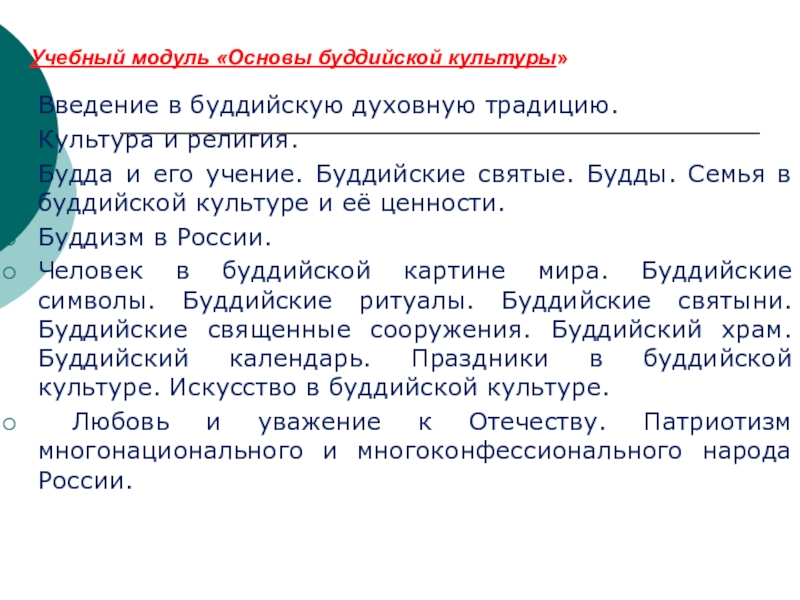 Слайд 7Учебный модуль «Основы буддийской культуры»