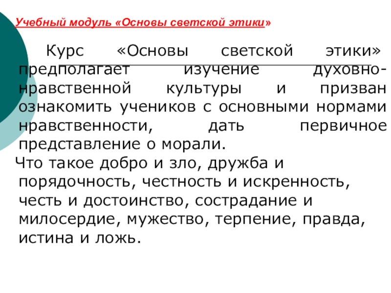 Слайд 10Учебный модуль «Основы светской этики»