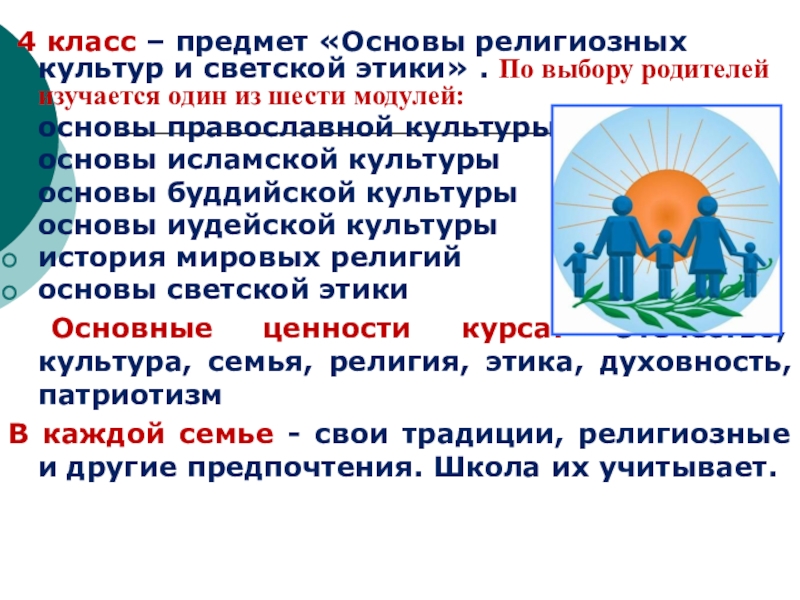 Слайд 3 4 класс – предмет «Основы религиозных культур и светской этики»
