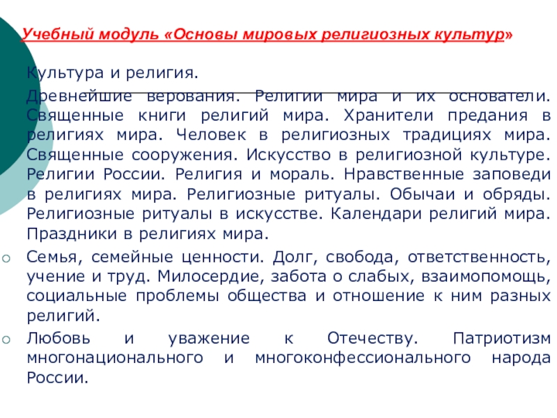Слайд 9Учебный модуль «Основы мировых религиозных культур»