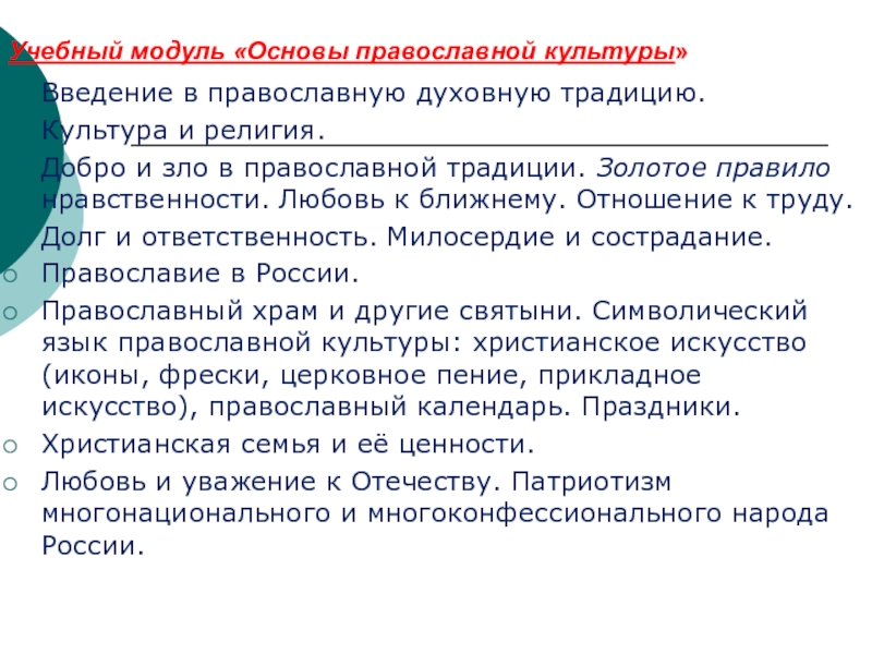 Слайд 11Учебный модуль «Основы православной культуры»