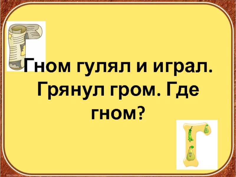 Слайд 47Гном гулял и играл. Грянул гром. Где гном?