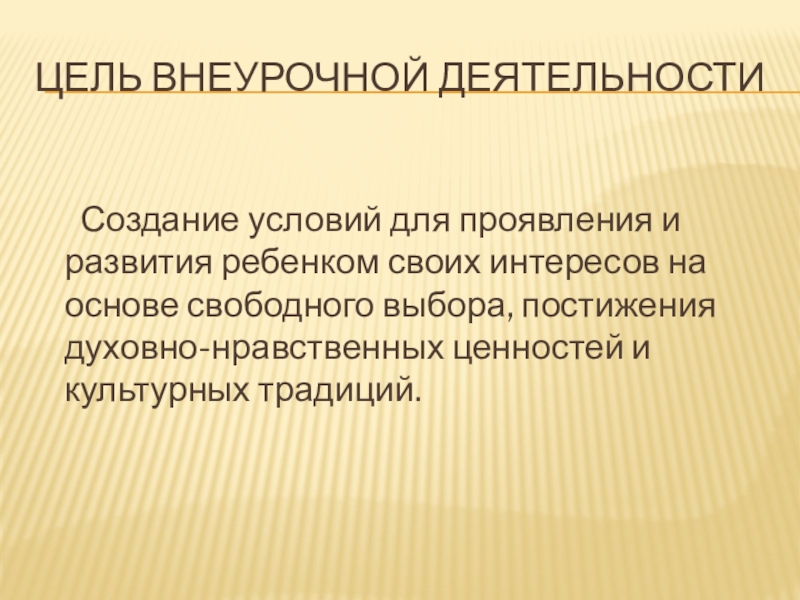 Цель внеурочной деятельности   Создание условий для проявления и развития ребенком своих интересов на основе свободного