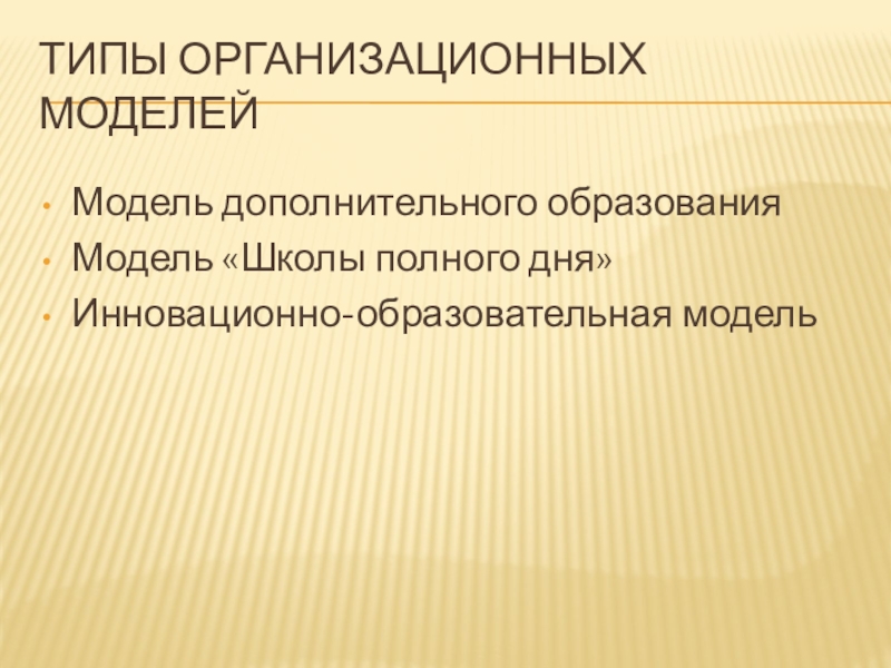 Типы организационных моделейМодель дополнительного образованияМодель «Школы полного дня»Инновационно-образовательная модель