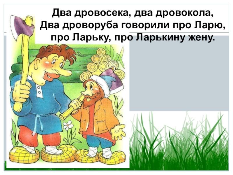 Два дровосека, два дровокола,Два дроворуба говорили про Ларю,про Ларьку, про Ларькину жену.
