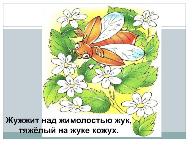 Слайд 36Жужжит над жимолостью жук,