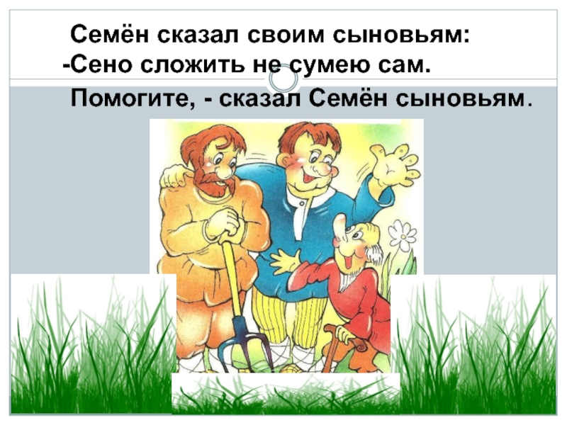 Семён сказал своим сыновьям:Сено сложить не сумею сам.Помогите, - сказал Семён сыновьям.