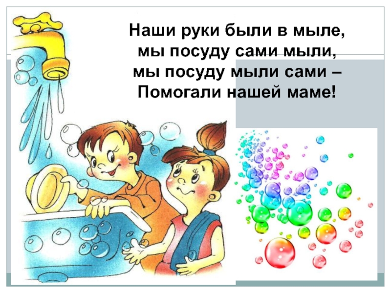 Наши руки были в мыле,мы посуду сами мыли,мы посуду мыли сами –Помогали нашей маме!