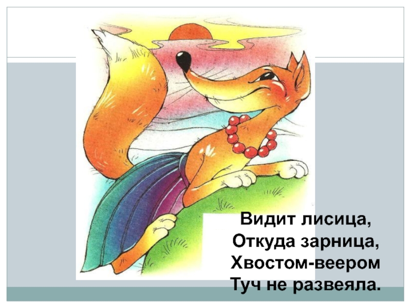 Видит лисица,Откуда зарница,Хвостом-вееромТуч не развеяла.