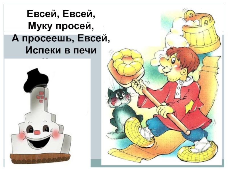 Евсей, Евсей,Муку просей,А просеешь, Евсей,Испеки в печиКалачи.