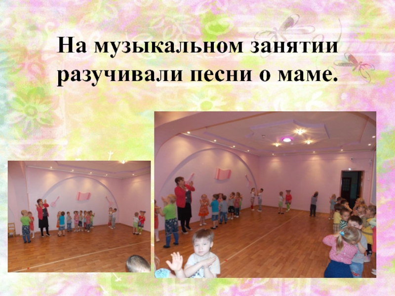 Слайд 12На музыкальном занятии разучивали песни о маме.