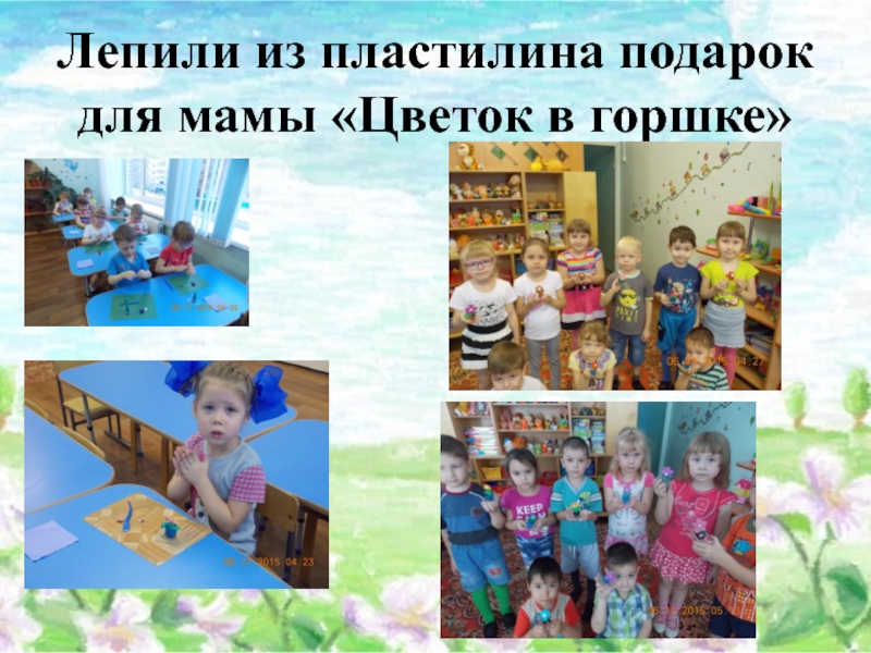 Слайд 11Лепили из пластилина подарок для мамы «Цветок в горшке»