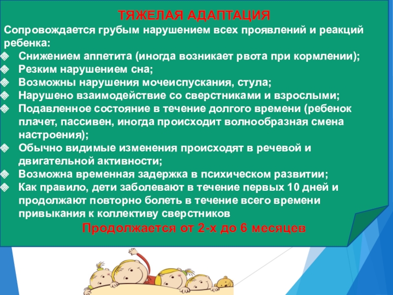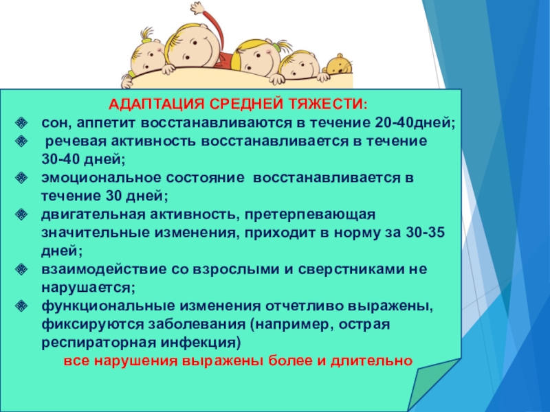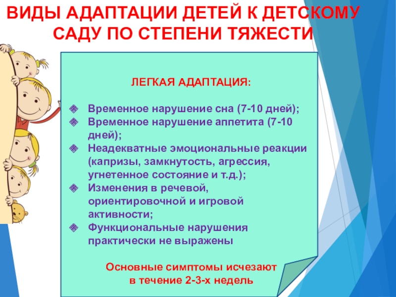 Слайд 8ВИДЫ АДАПТАЦИИ ДЕТЕЙ К ДЕТСКОМУ САДУ ПО СТЕПЕНИ ТЯЖЕСТИ