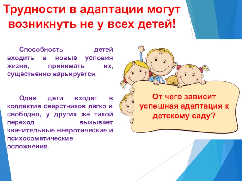 Слайд 6Трудности в адаптации могут возникнуть не у всех детей!