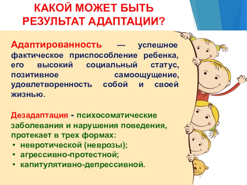 Адаптированность — успешное фактическое приспособление ребенка, его