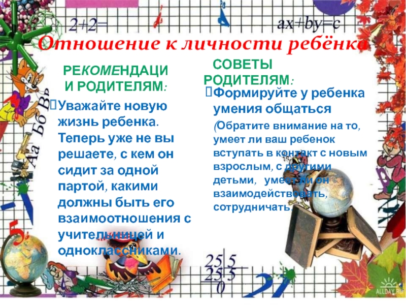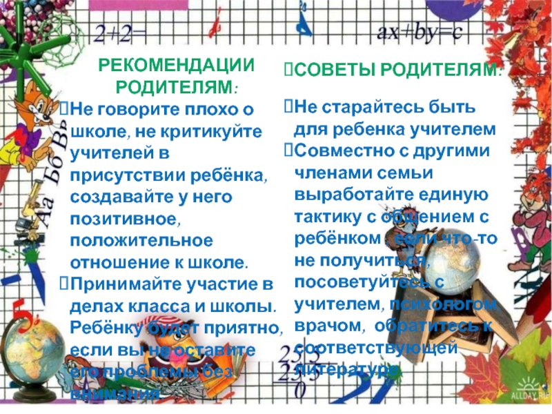 Совместно с другими членами семьи выработайте единую тактику с общением с ребёнком , если что-то не получиться, посоветуйтесь с учителем, психологом, врачом, обратитесь к соответствующей литературе.