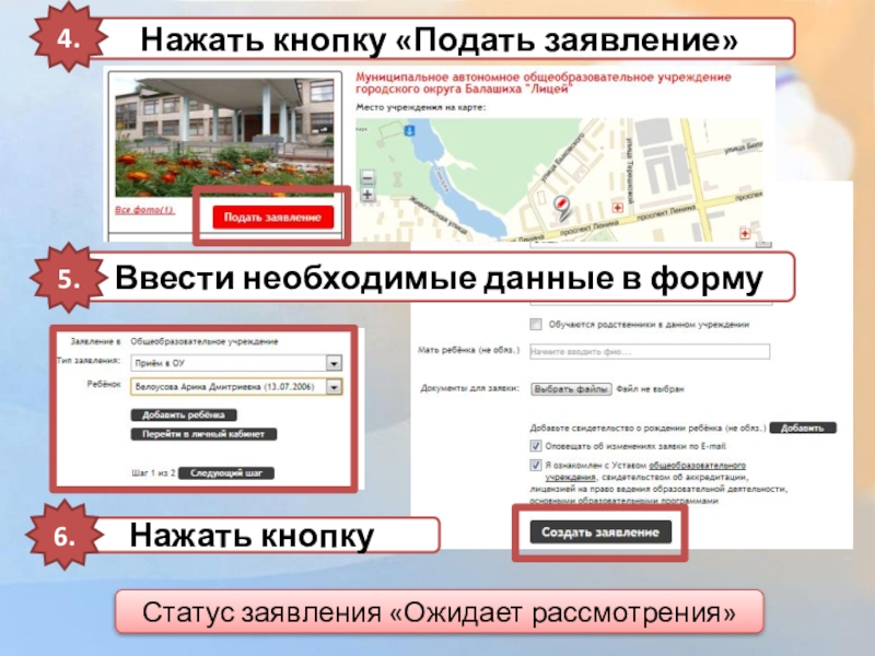 Нажать кнопку «Подать заявление»