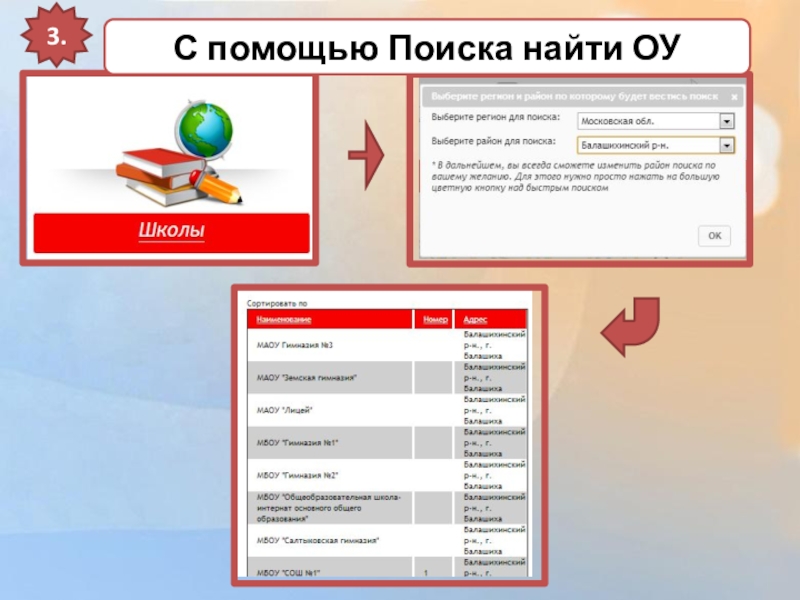 С помощью Поиска найти ОУ