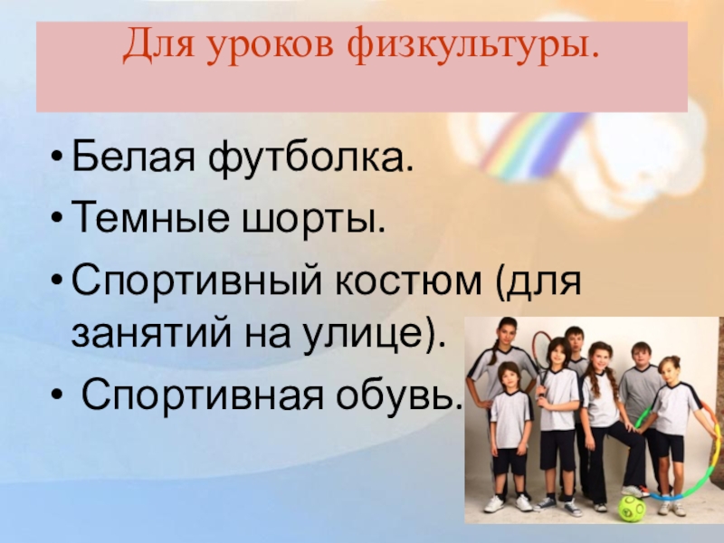 Слайд 38Для уроков физкультуры.