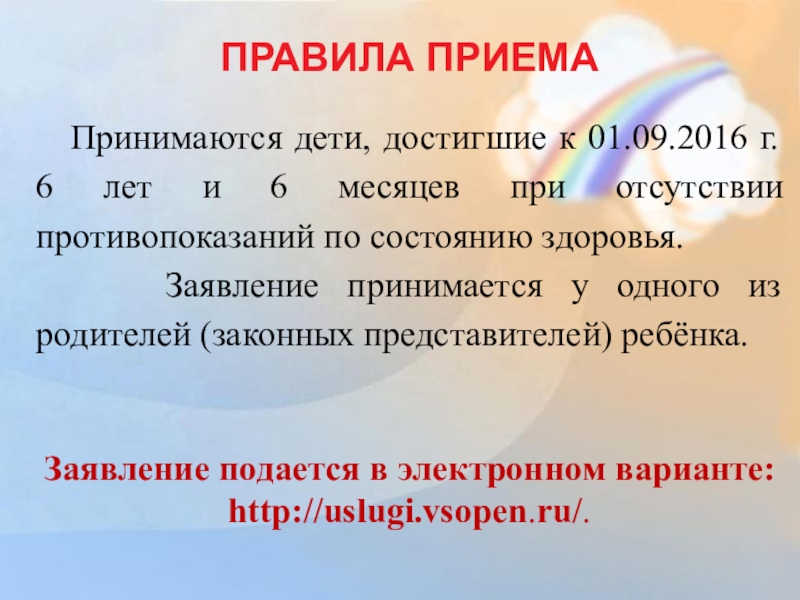 Принимаются дети, достигшие к 01.09.2016 г. 6 лет