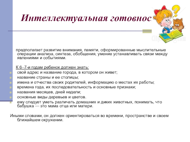 предполагает развитие внимания, памяти, сформированные мыслительные операции