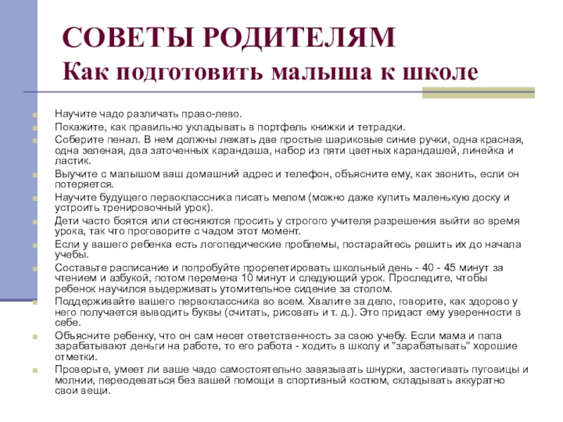 Слайд 10СОВЕТЫ РОДИТЕЛЯМ