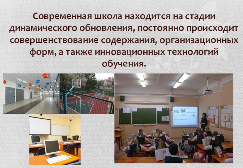 Современная школа находится на стадии динамического обновления, постоянно происходит совершенствование содержания, организационных форм, а также инновационных технологий