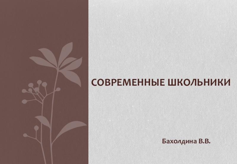 Бахолдина В.В.СОВРЕМЕННЫЕ ШКОЛЬНИКИ