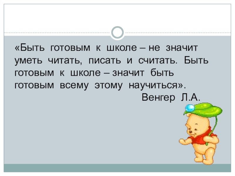 и считать. Быть готовым к школе – значит быть готовым всему этому научиться».