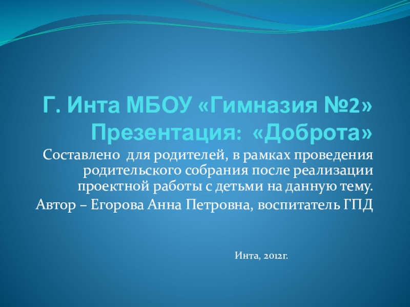 Автор – Егорова Анна Петровна, воспитатель ГПД