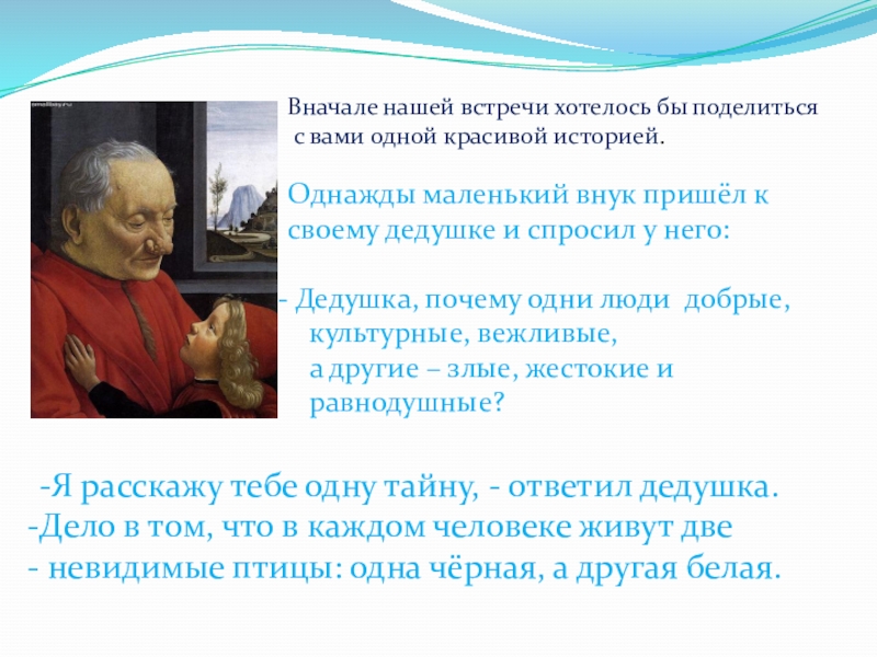 -Я расскажу тебе одну тайну, - ответил дедушка.