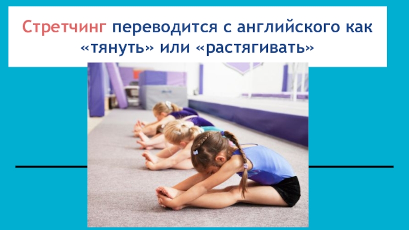 Слайд 2Стретчинг переводится с английского как «тянуть» или «растягивать»